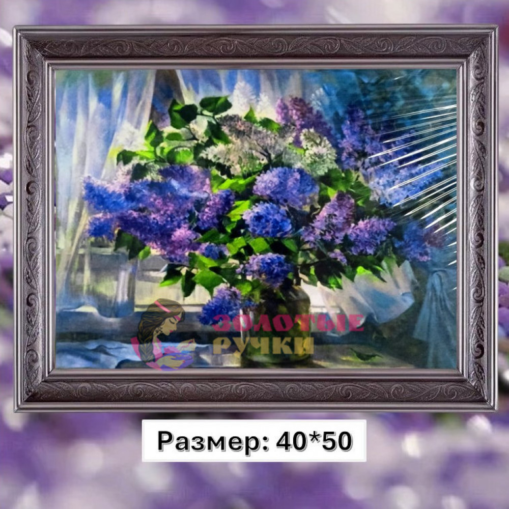 Алмазная мозаика "Букет сирени" на подрамнике. Размер: 40*50
