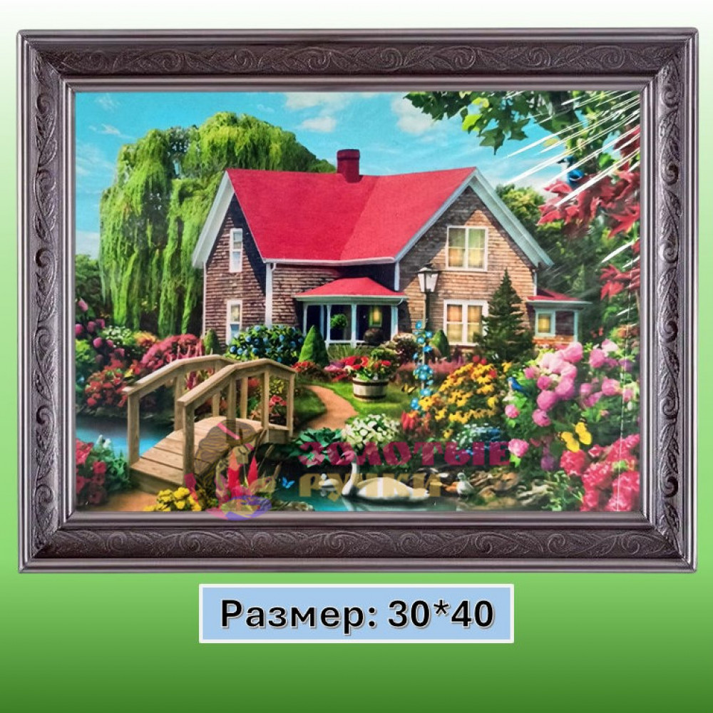 Алмазная мозаика "Домик в деревне" на подрамнике. Размер: 30*40