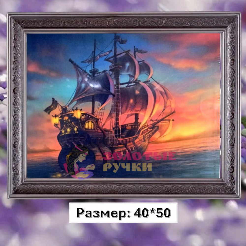 Алмазная мозаика "Парусник на закате" на подрамнике. Размер: 40*50