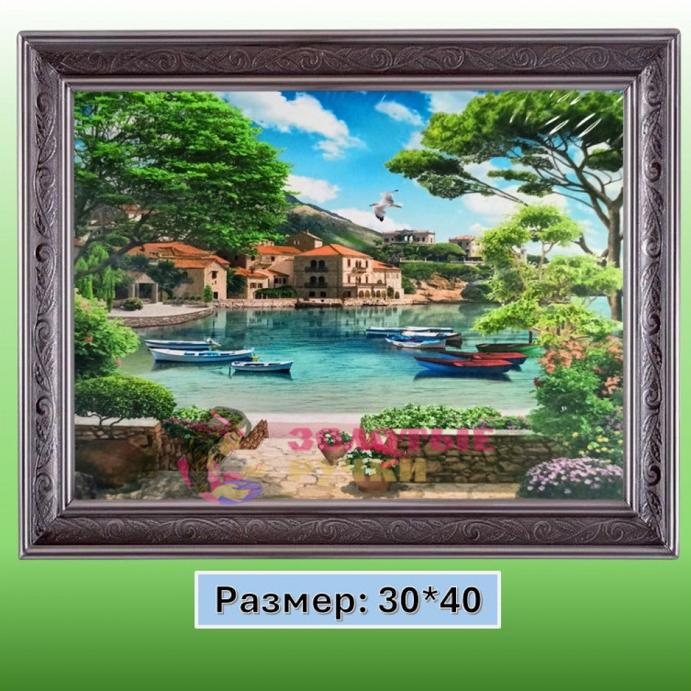 Алмазная мозаика "Живописная набережная" на подрамнике. Размер: 30*40