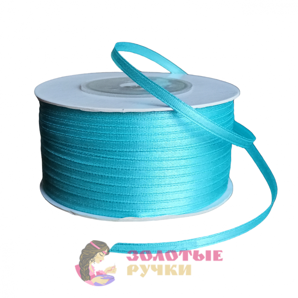 Лента атласная. Ширина: 3 мм. Цвет: голубой. Количество в упаковке: 131,6 м