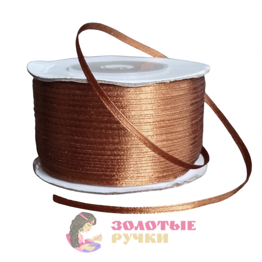Лента атласная. Ширина: 3 мм. Цвет: коричневый. Количество в упаковке: 131,6 м