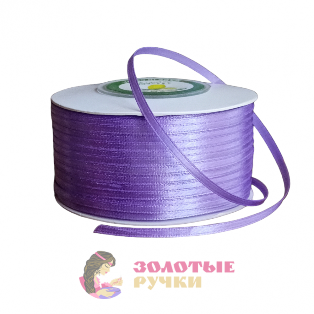 Лента атласная. Ширина: 3 мм. Цвет: сиреневый. Количество в упаковке: 131,6 м