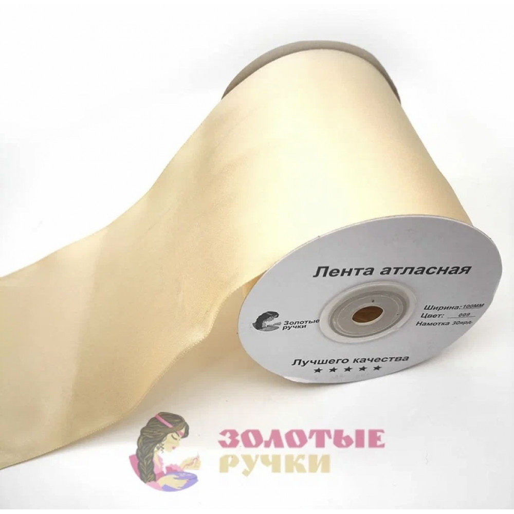 - Атласная лента в рулонах по 30 ярдов, ширина 100 мм, цвет бежевый