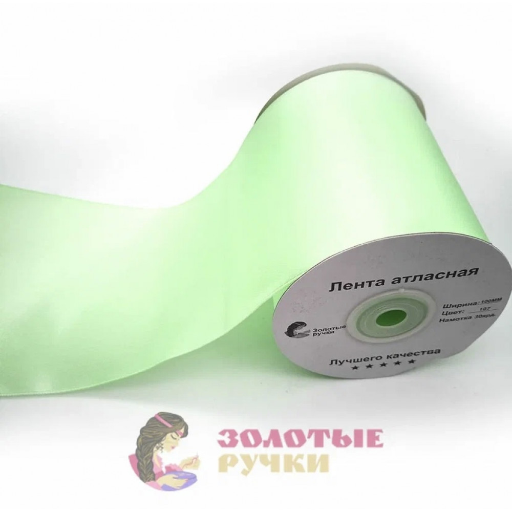 Атласная лента в рулонах по 30 ярдов, ширина 100 мм, цвет мятный