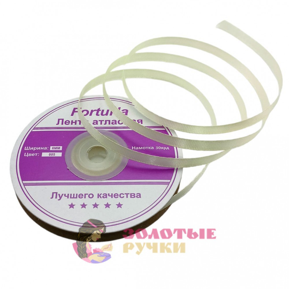 Лента атласная. Ширина: 6 мм. Цвет: молочный. Количество в упаковке: 27,4 м