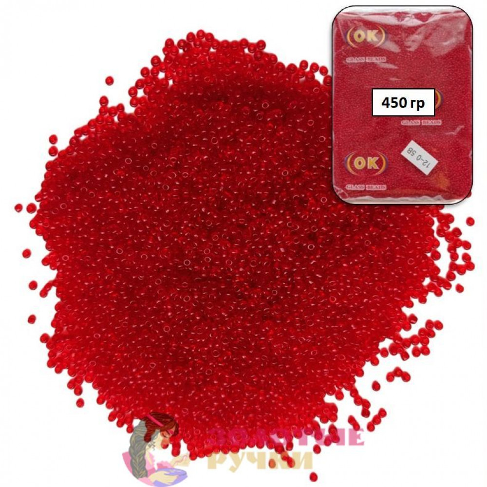 Бисер. Размер: 12/0. Цвет: красный прозрачный. Количество в упаковке: 450 гр.