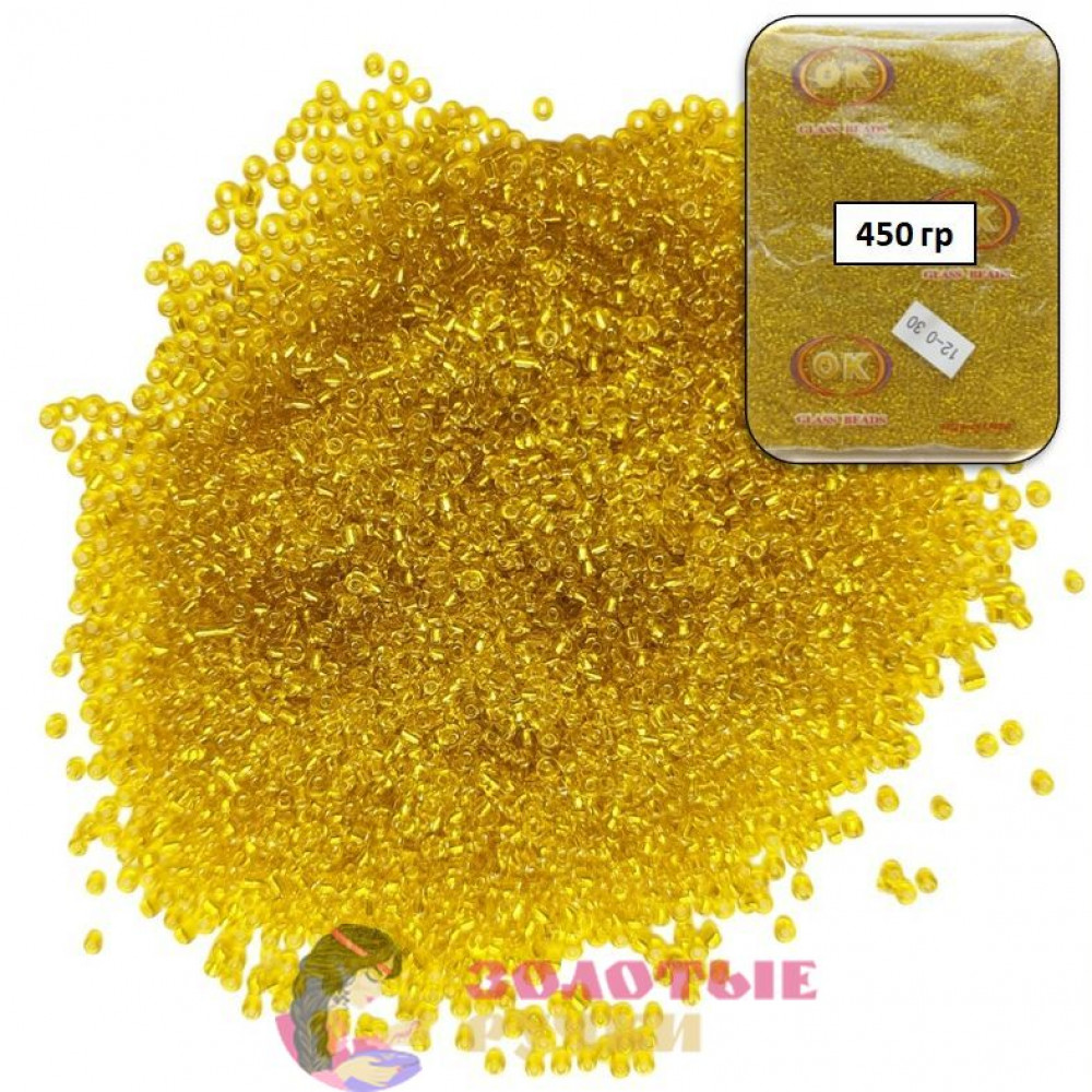 Бисер. Размер: 12/0. Цвет: желтый прозрачный. Количество в упаковке: 450 гр.