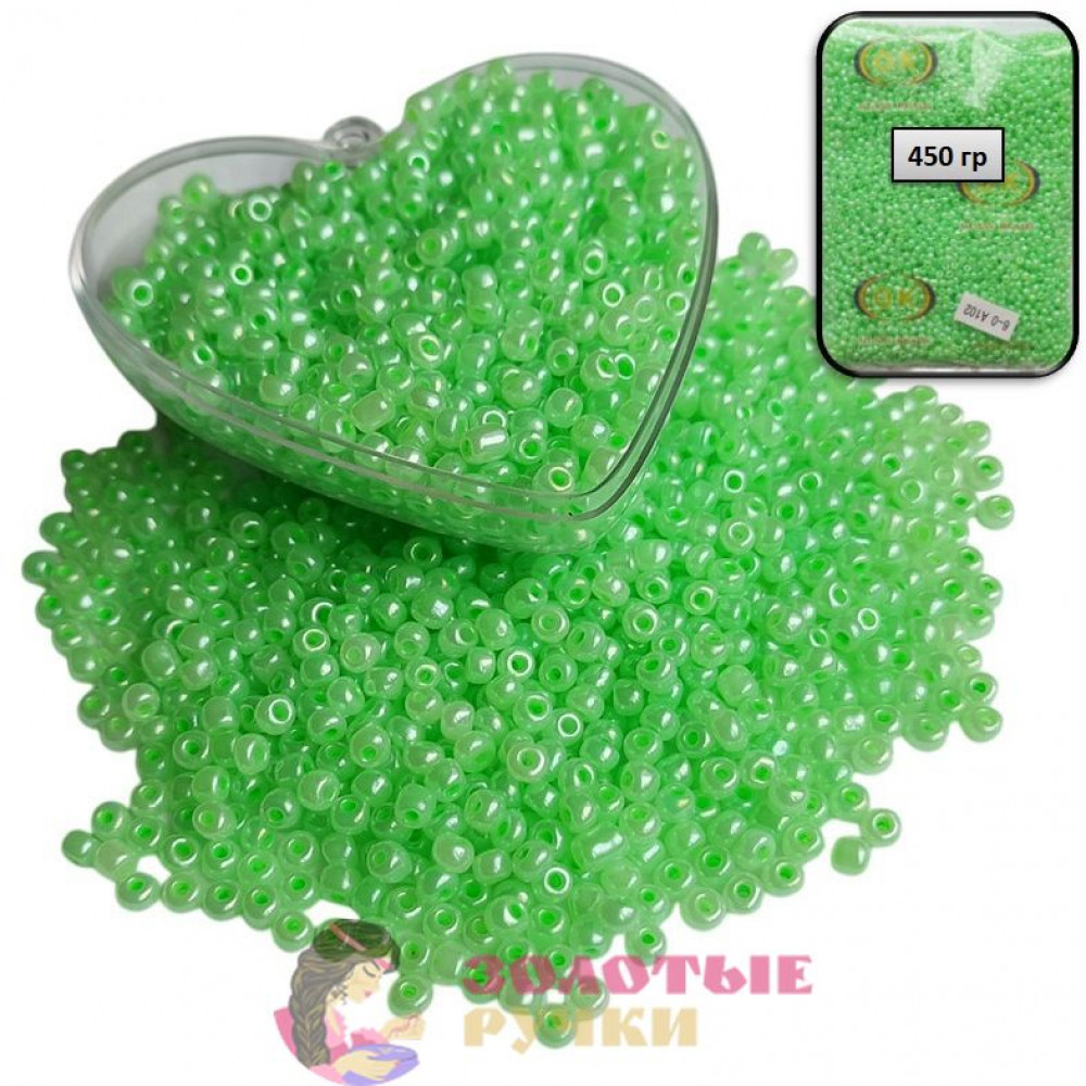 Бисер. Размер: 6/0. Цвет: салатовый перламутровый. Количество в упаковке: 450 гр.