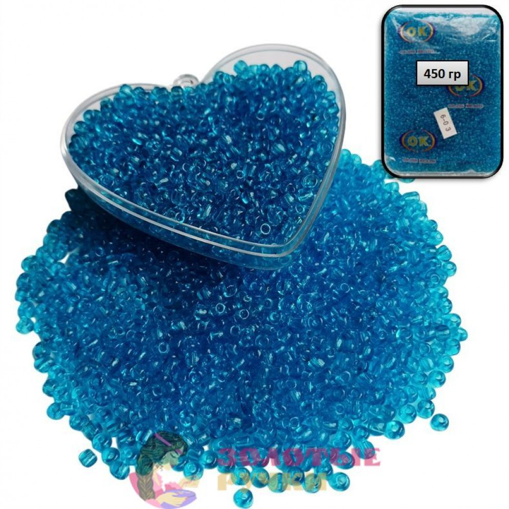 Бисер. Размер: 6/0. Цвет: голубой прозрачный. Количество в упаковке: 450 гр.