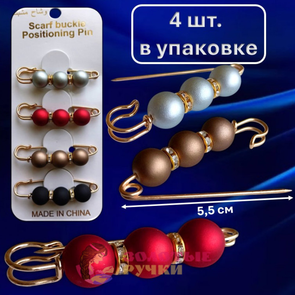 Булавки декоративные с бусинами. Цвет: золото. Количество в упаковке: 4 шт.