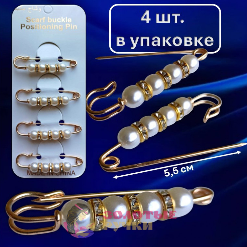 Булавки декоративные с жемчужными бусинами. Цвет: золото. Количество в упаковке: 4 шт.