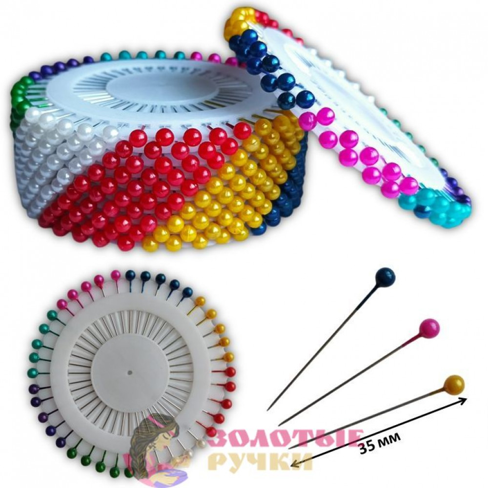 Булавки портновские наметочные "Ромашка" на пластине с цветными головками. Длина: 35 мм. В 1 упаковке - 480 шт. (12 блистеров по 40 шт.)