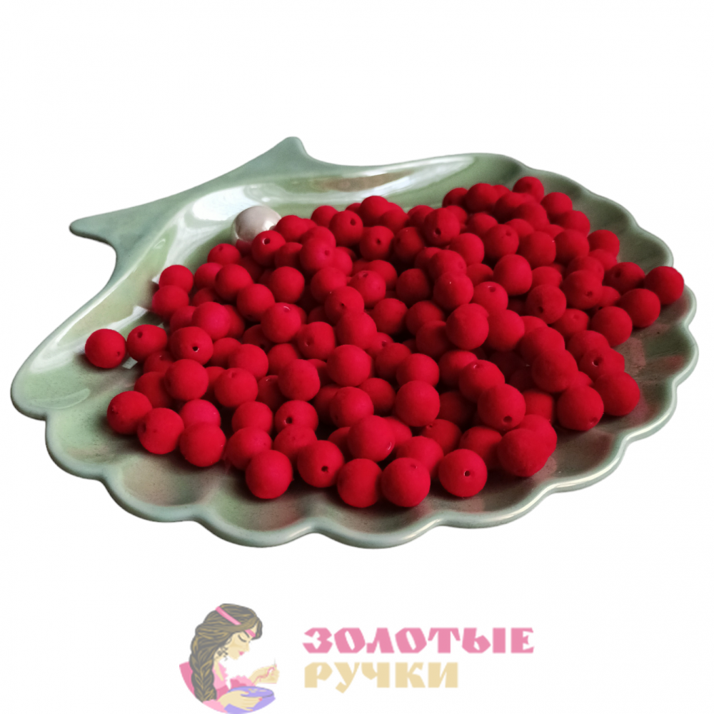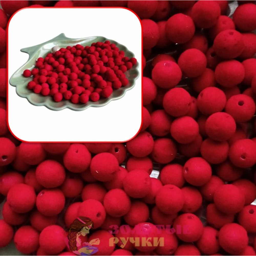 Бусины акриловые с бархатным покрытием. Размер: 10 мм. Цвет: красный.