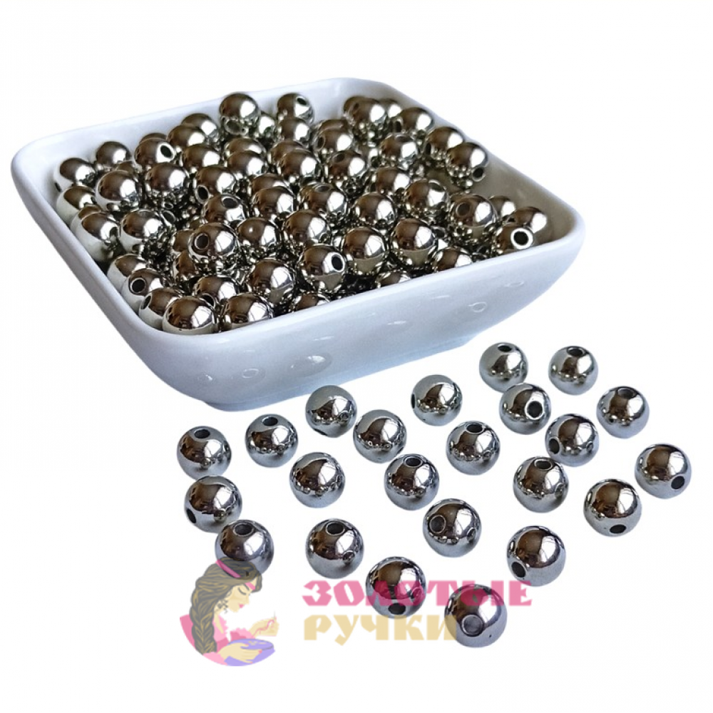 Бусины. Размер : 14 мм. Цвет: серебро