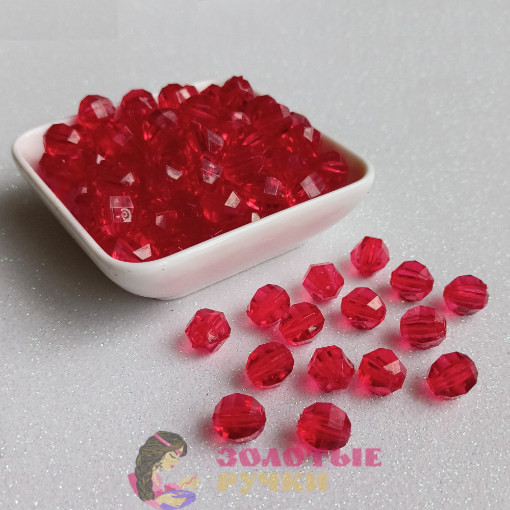 Бусины граненые. Размер: 10 мм. Цвет: красный.
