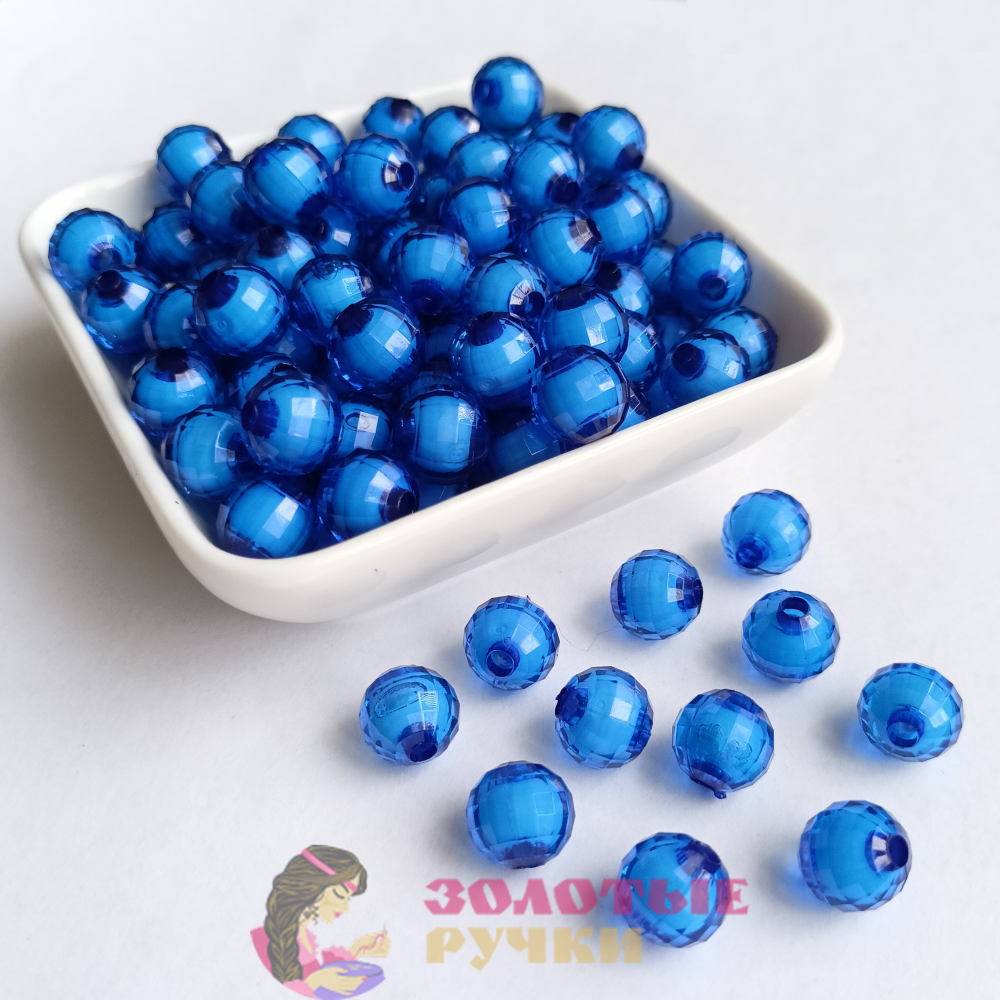 Бусины граненые круглые. Размер: 10 мм. Цвет: синий.