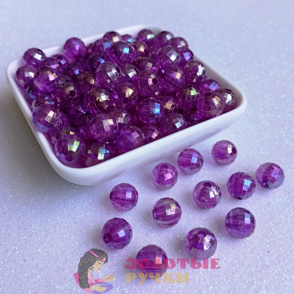Бусины граненые круглые. Размер: 10 мм. Цвет: фиолетовый хамелеон.
