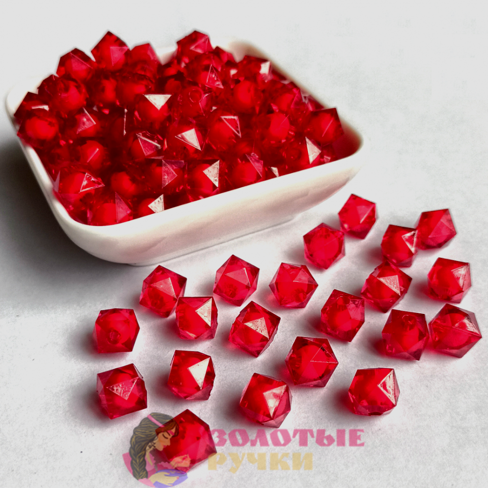 Бусины граненые квадратные. Размер: 10 мм. Цвет: красный.