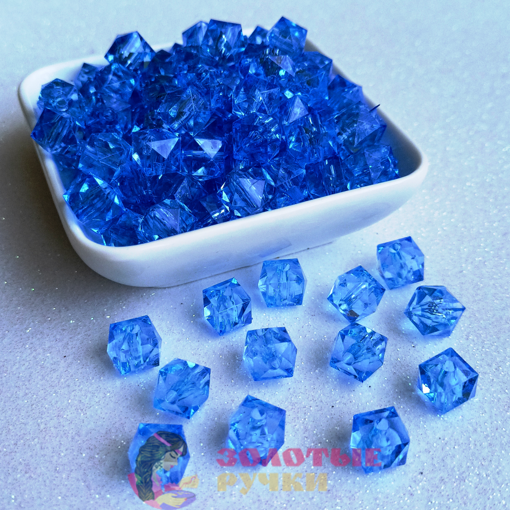 Бусины граненые прозрачные квадратные. Размер: 10 мм. Цвет: синий.