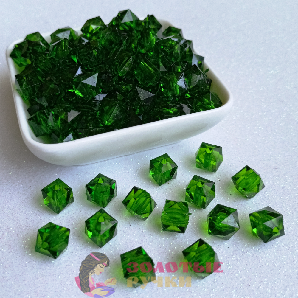 Бусины граненые прозрачные квадратные. Размер: 10 мм. Цвет: зеленый.