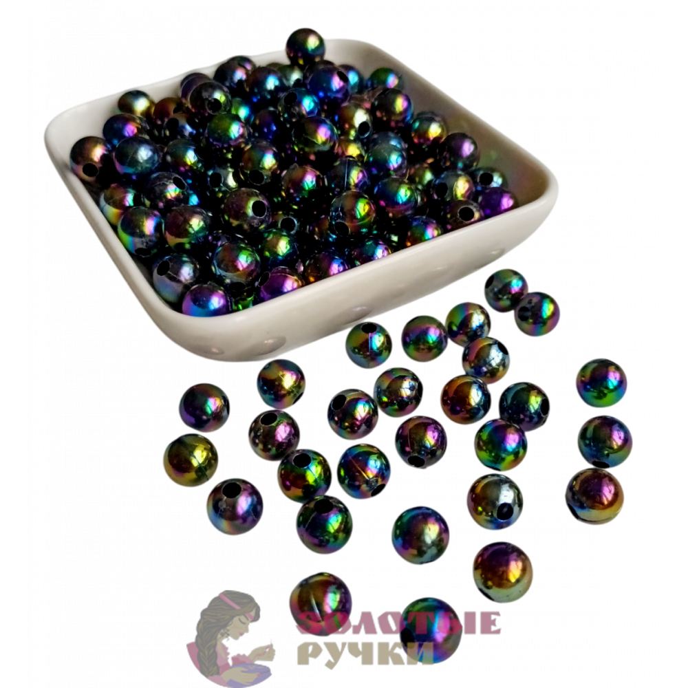 Бусины круглые, 8 мм, цвет черный перламутровый, в упаковке 500 гр.