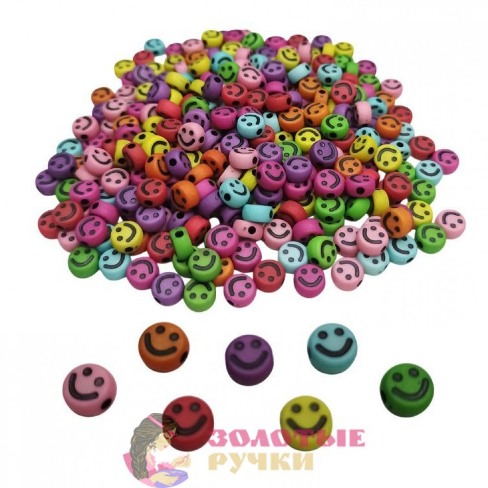 Бусины круглые "Смайлик". Цвет: разноцветные с черными смайликами. Количество в упаковке: 500 гр.
