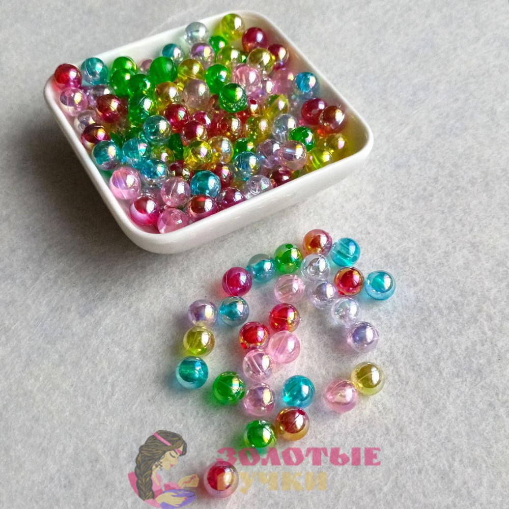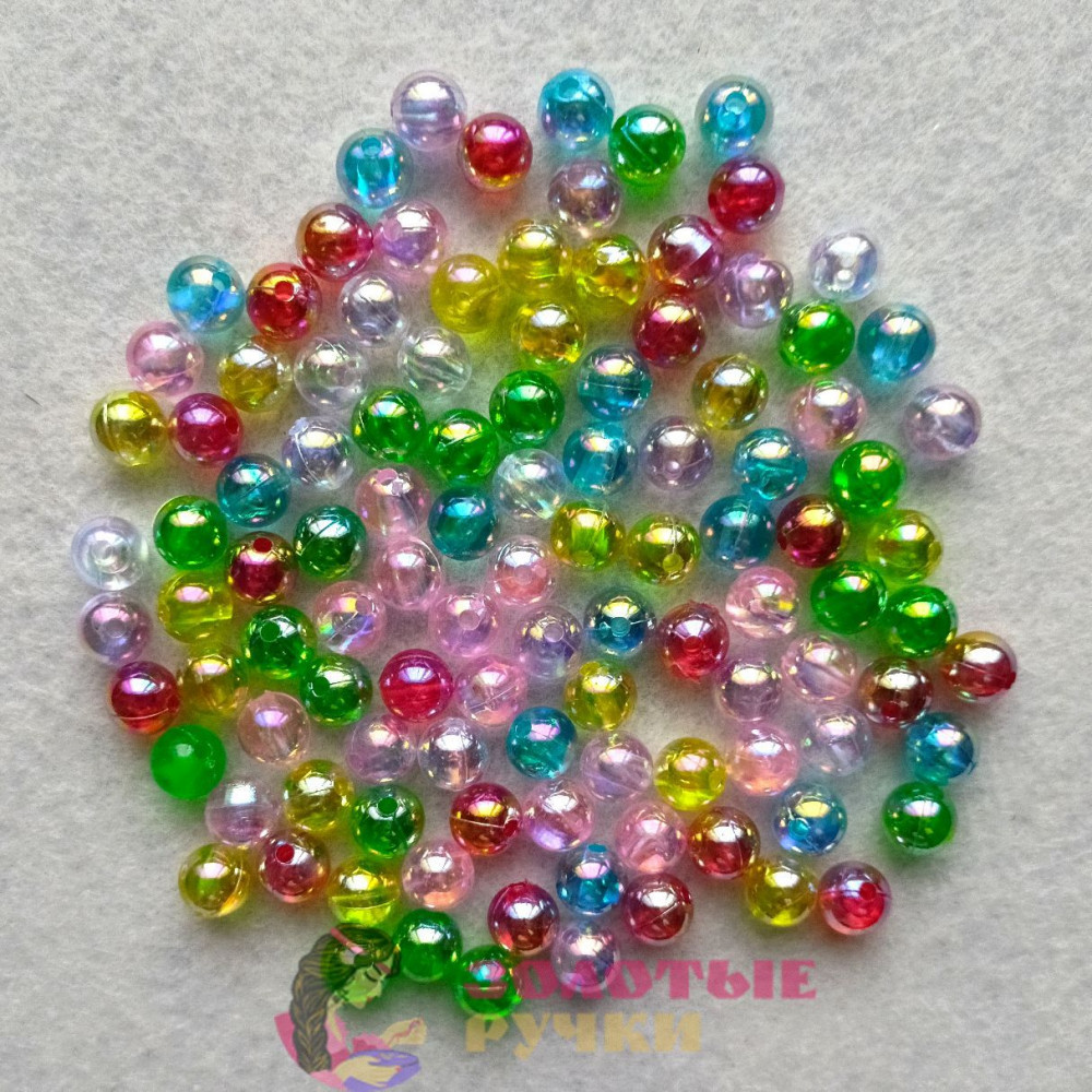 Бусины круглые, полупрозрачные, 6 мм, цвет микс перламутровый, в упаковке 500 гр.