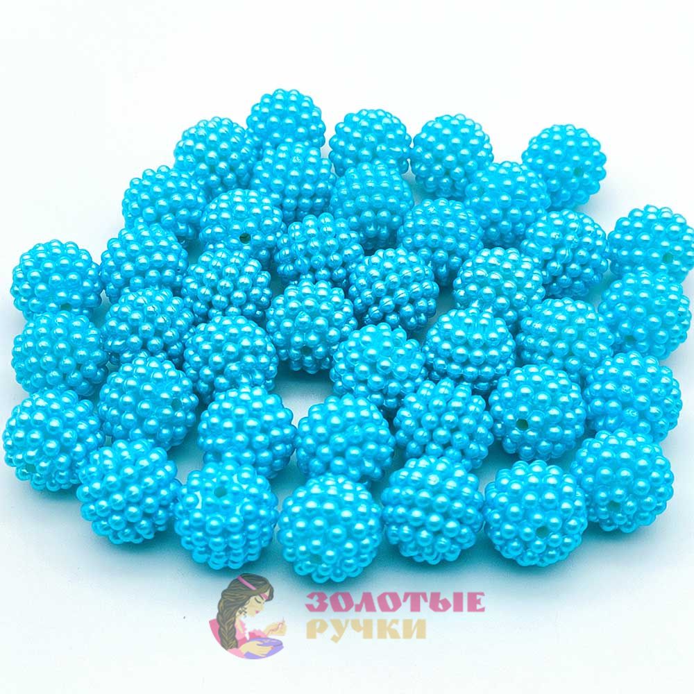 Бусины Шамбала 14мм цвет голубой в упаковке 500 гр
