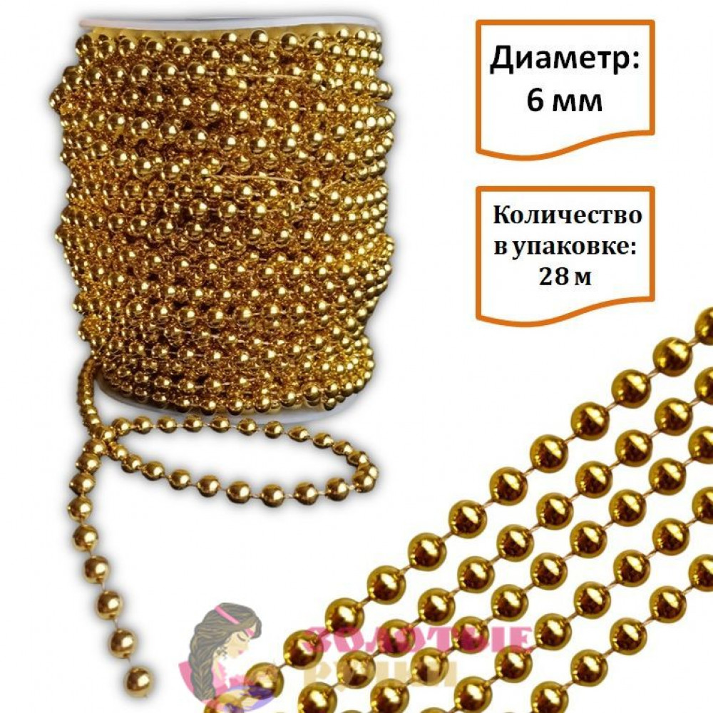 Бусы на бобине. Диаметр: 6 мм. Количество в упаковке: 28 м. Цвет: золото