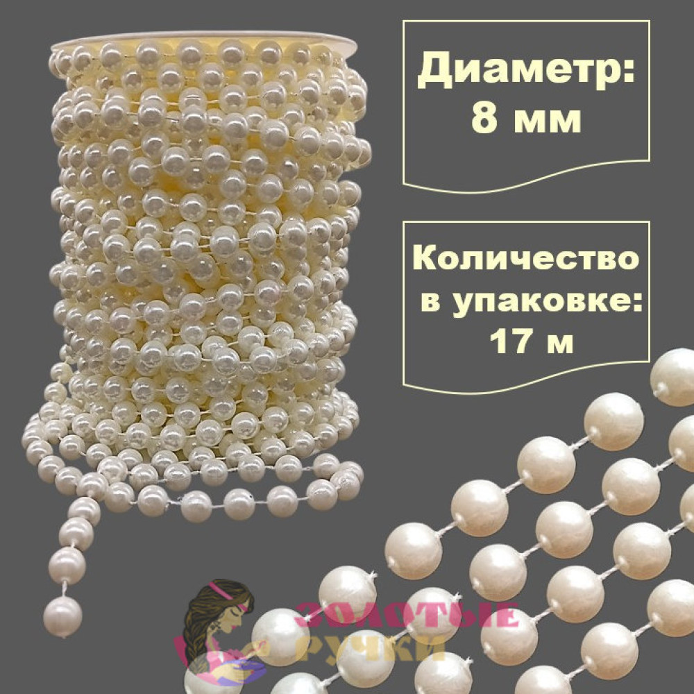 Бусы на бобине. Диаметр: 8 мм. Количество в упаковке: 17 м. Цвет: молочный