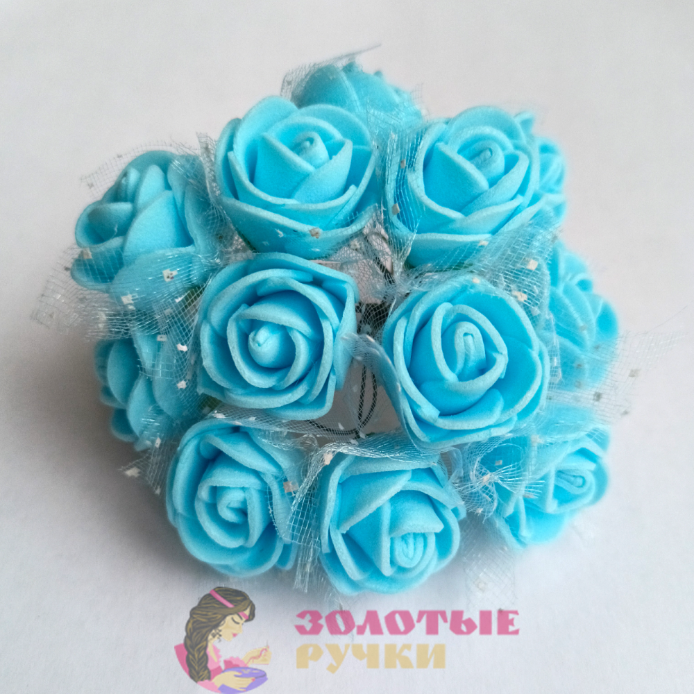 Декоративные цветочки из фоамирана в виде розочки на проволоке с сеточкой из фатина.
