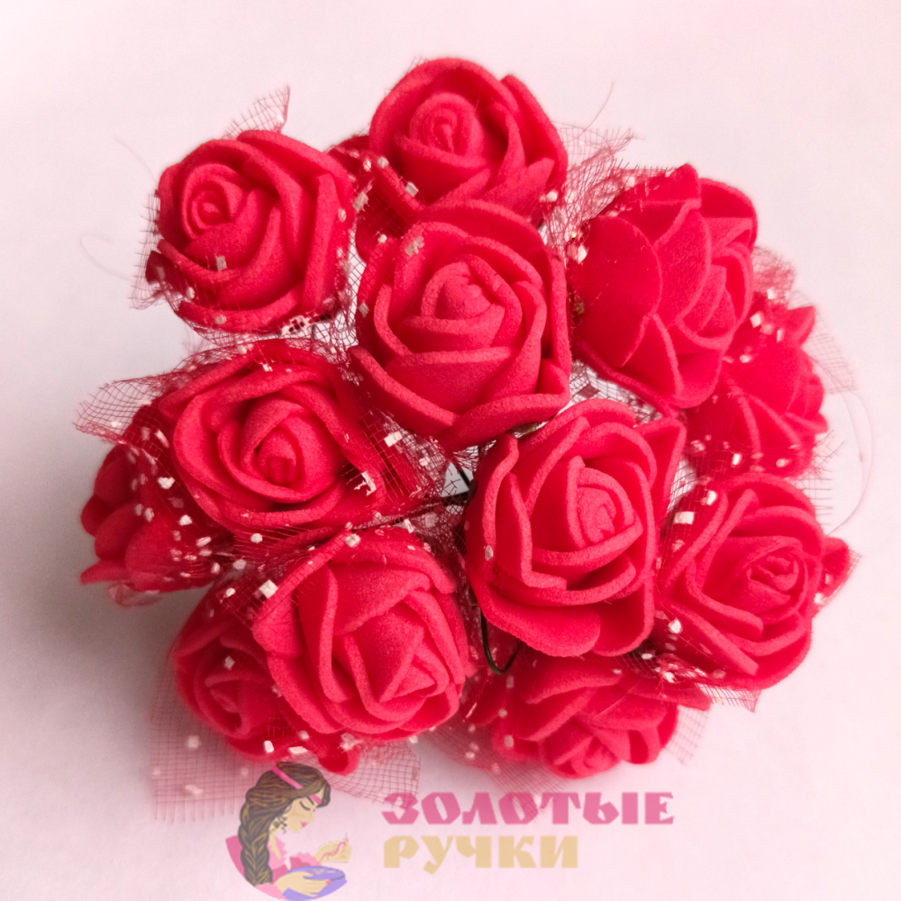 Декоративные цветочки из фоамирана в виде розочки на проволоке с сеточкой из фатина.