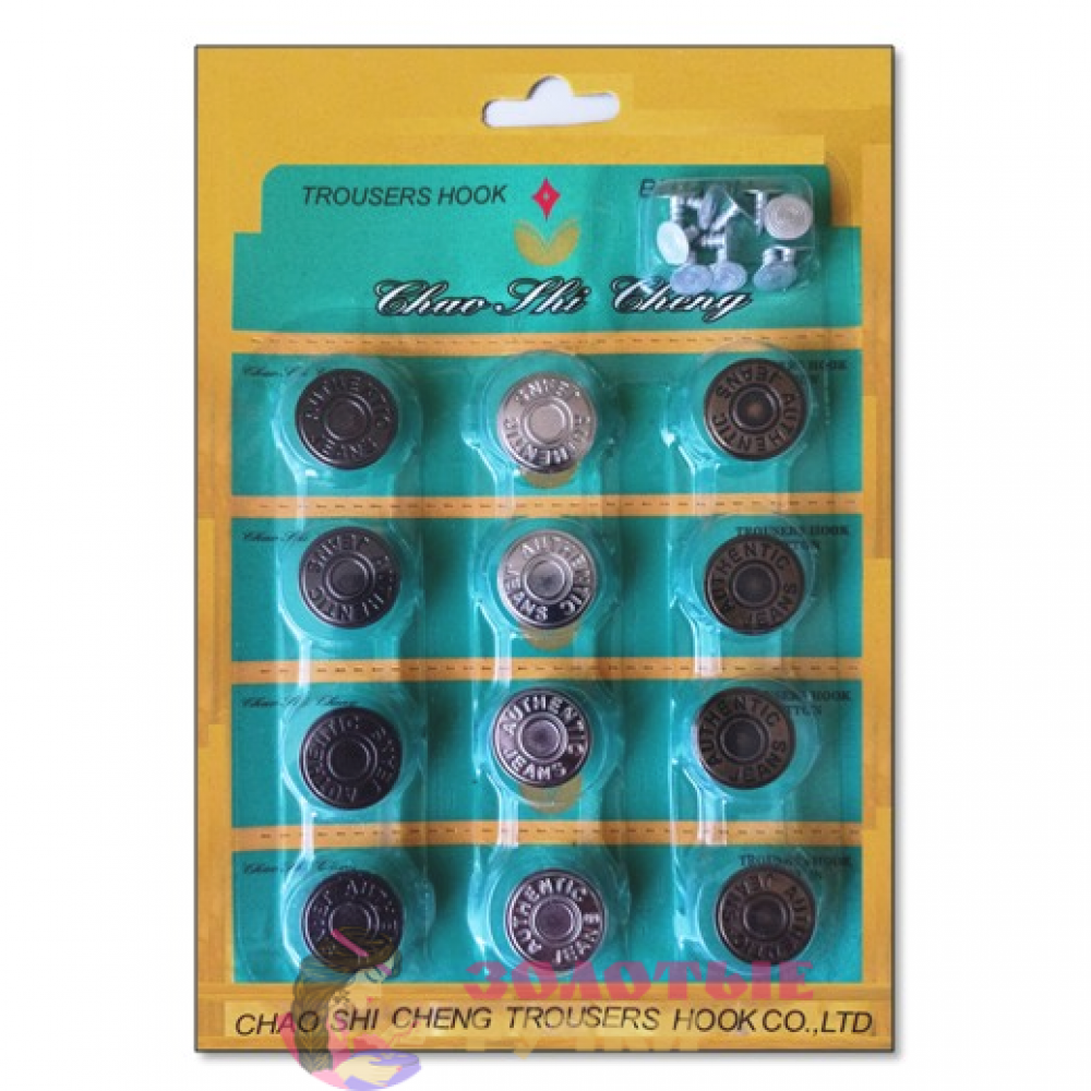 Джинсовые пуговицы состоят из двух частей: верхняя часть - это шляпка, которая может быть гладкая, с рисунками и иметь различные цвета, нижняя - гвоздик, который запрессовывается в шляпку.