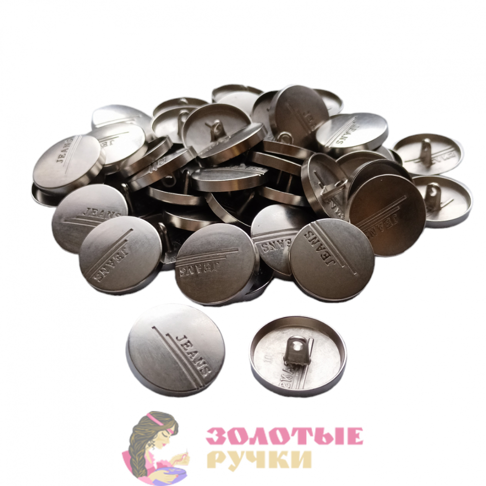 Джинсовые пуговицы на ножке "JEANS". Диаметр: 20 мм. Цвет: серебро. Количество в упаковке 50 шт.