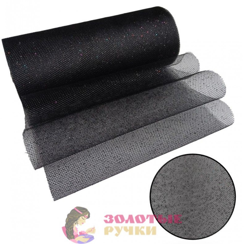 Фатин с блестками в шпульке. Ширина: 15 см. Цвет: черный