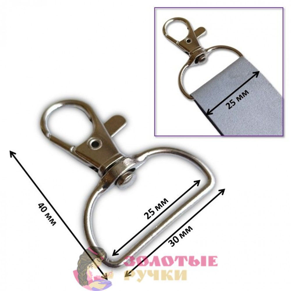 Карабин — это застёжка, которая сцепляется в одно движение, надёжно скрепляет части изделия. Карабин сделан из прочного лёгкого металла, который не расстегнётся случайно. Может применяться при ремонте или изготовлении сумок, рюкзаков или других аксессуаров.