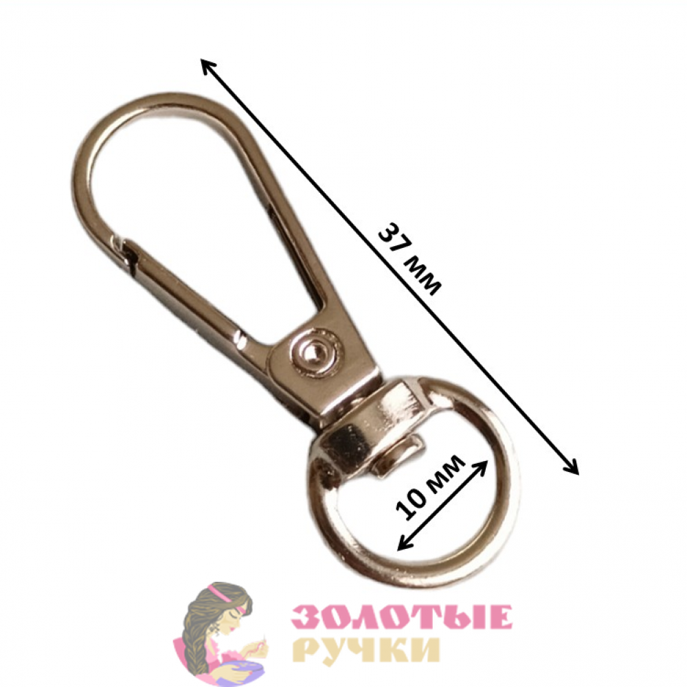 Карабин — это застёжка, которая сцепляется в одно движение, надёжно скрепляет части изделия. Карабин сделан из прочного лёгкого металла, который не расстегнётся случайно. Может применяться при ремонте или изготовлении сумок, рюкзаков или других аксессуаров.