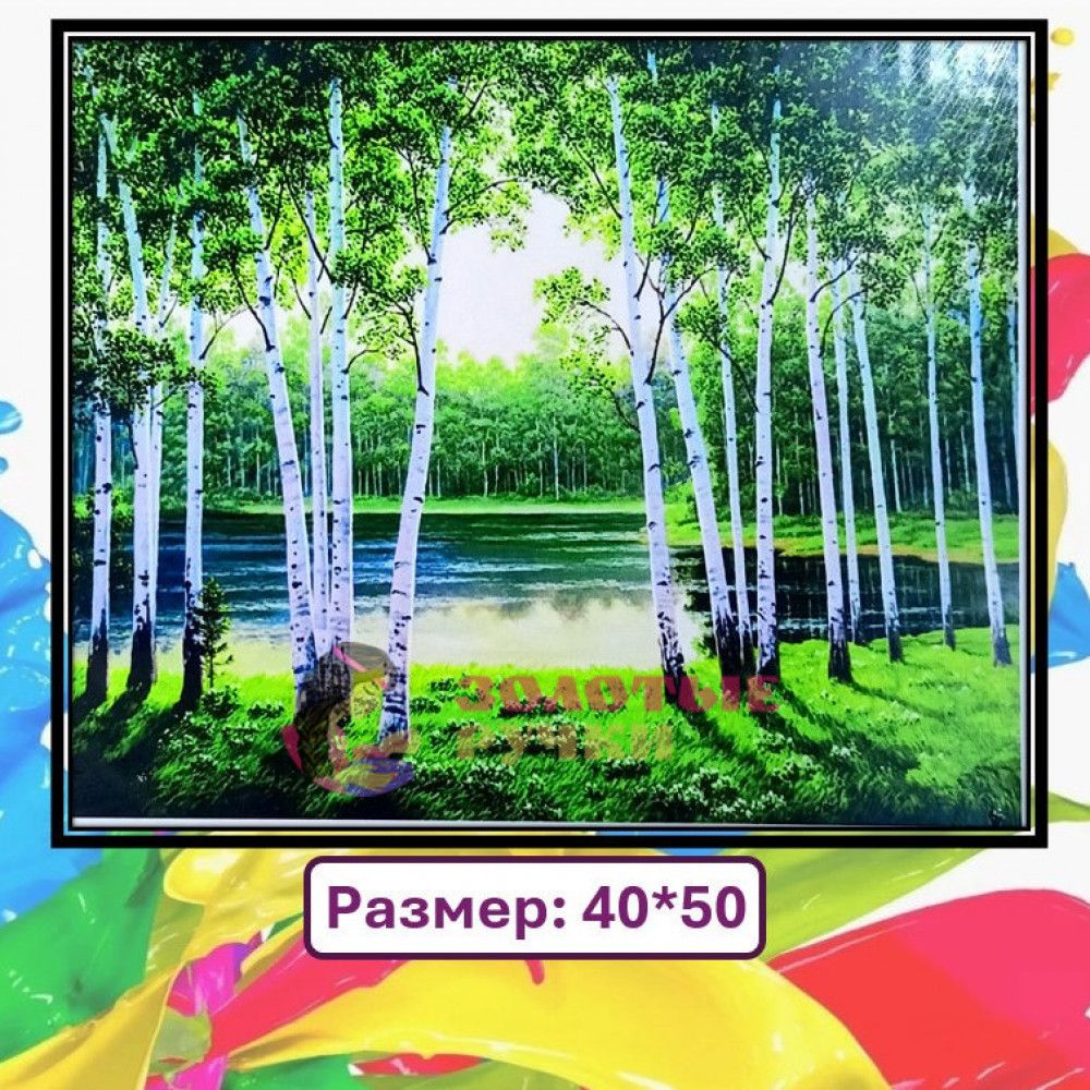 Картина для рисования по номерам "Берёзы у реки". Размер: 40*50