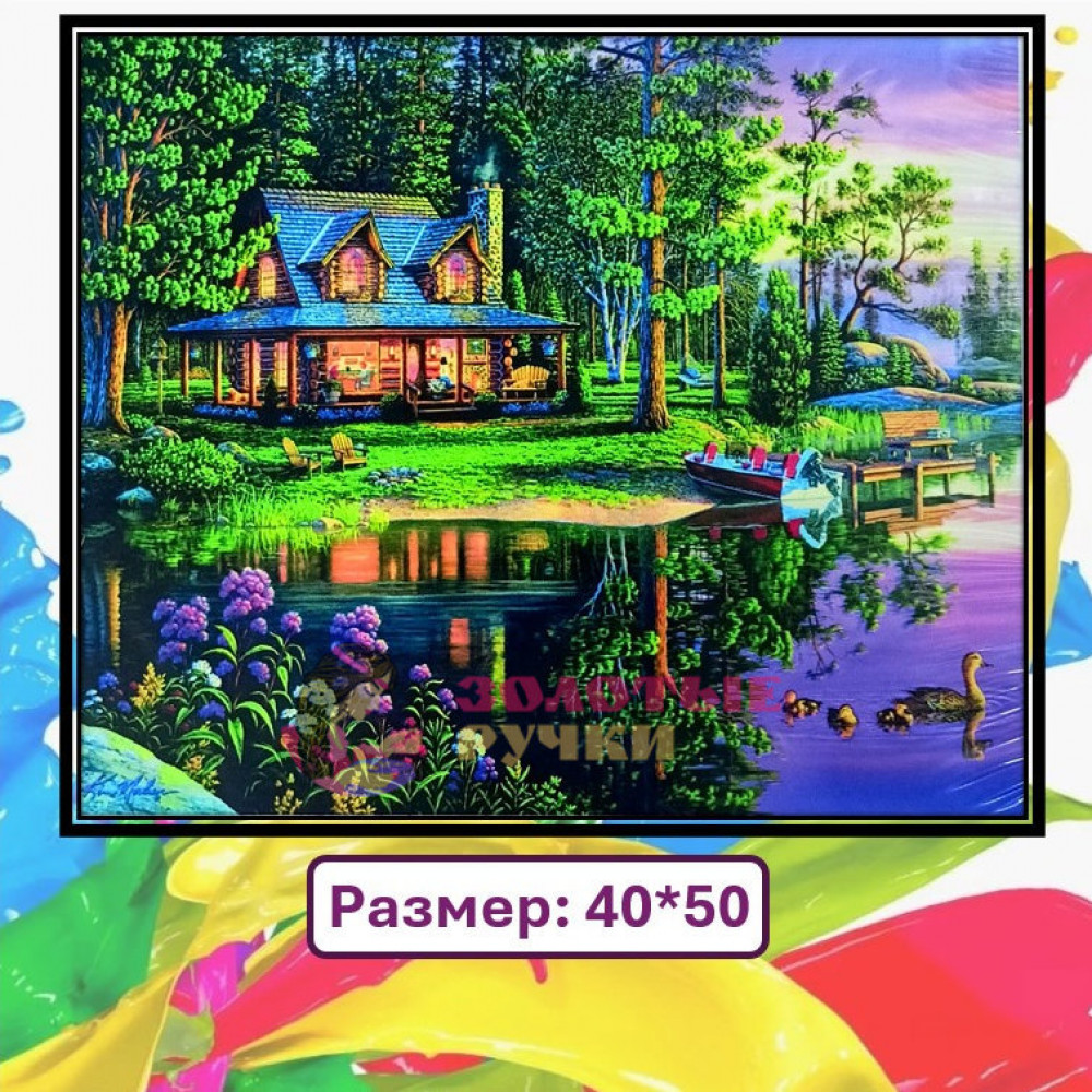 Картина для рисования по номерам "Домик на пруду". Размер: 40*50