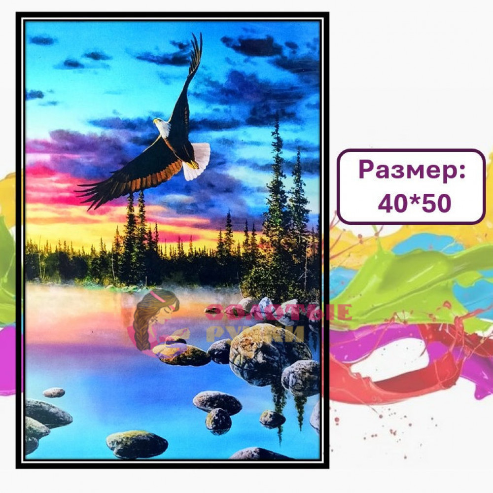 Картина для рисования по номерам "Орёл парящий на фоне заката". Размер: 40*50