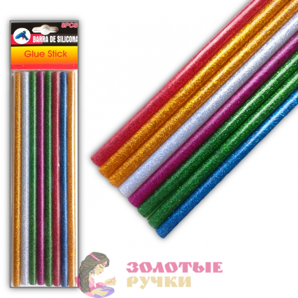 Стержни клеевые для клеевого пистолета. Цвет: ассорти. Диаметр: 7 мм. Длина: 20 см. Количество в упаковке: 8 шт.