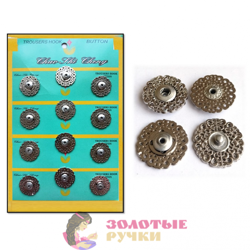 Кнопки пришивные металлические ажурные. Размер: 21 мм. Цвет: серебро