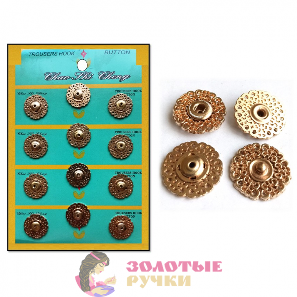 Кнопки пришивные металлические ажурные. Размер: 21 мм. Цвет: золото