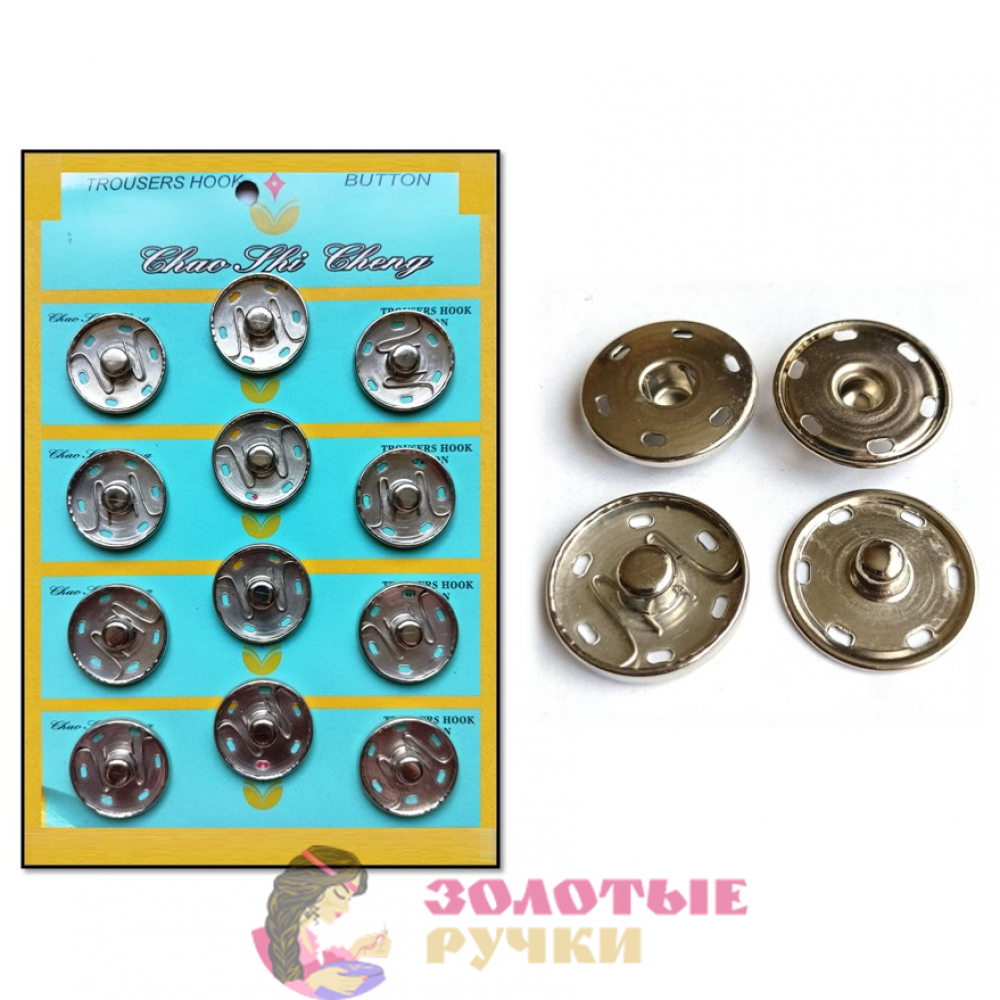 Кнопки пришивные металлические. Размер: 25 мм. Цвет: серебро