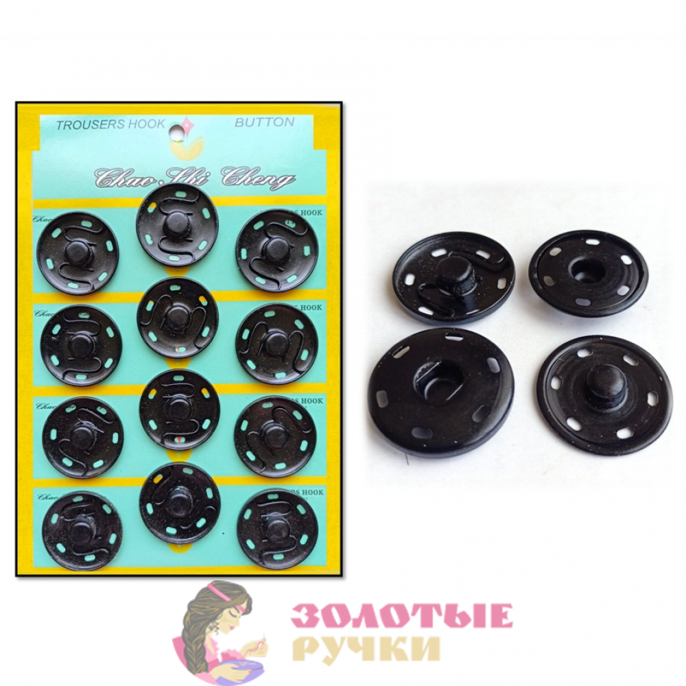 Кнопки пришивные металлические. Размер: 30 мм. Цвет: черный