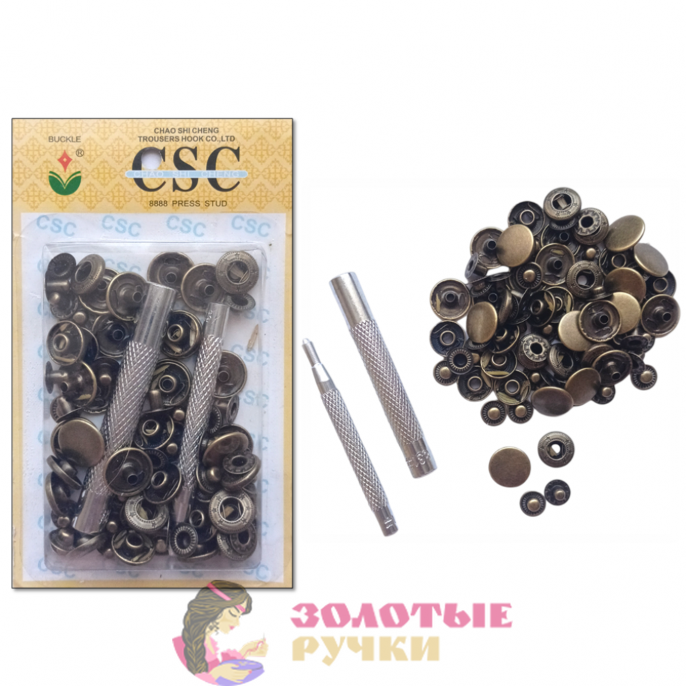 Кнопки для одежды металлические с установщиком. Цвет: бронза.