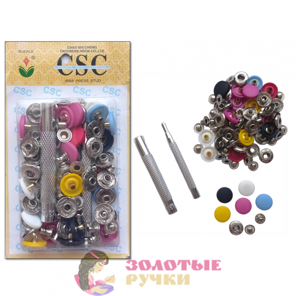 Кнопки для одежды металлические с установщиком. Цвет: микс.