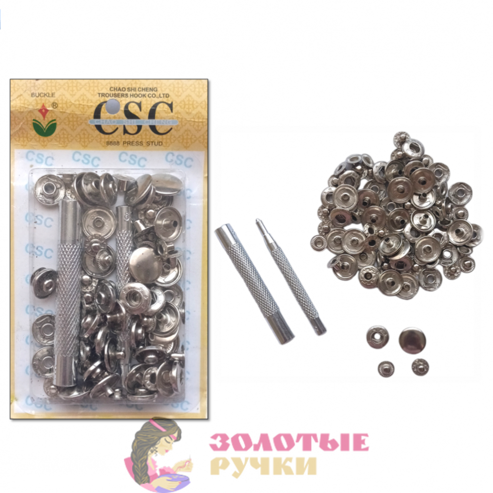 Кнопки для одежды металлические с установщиком. Цвет: серебро.