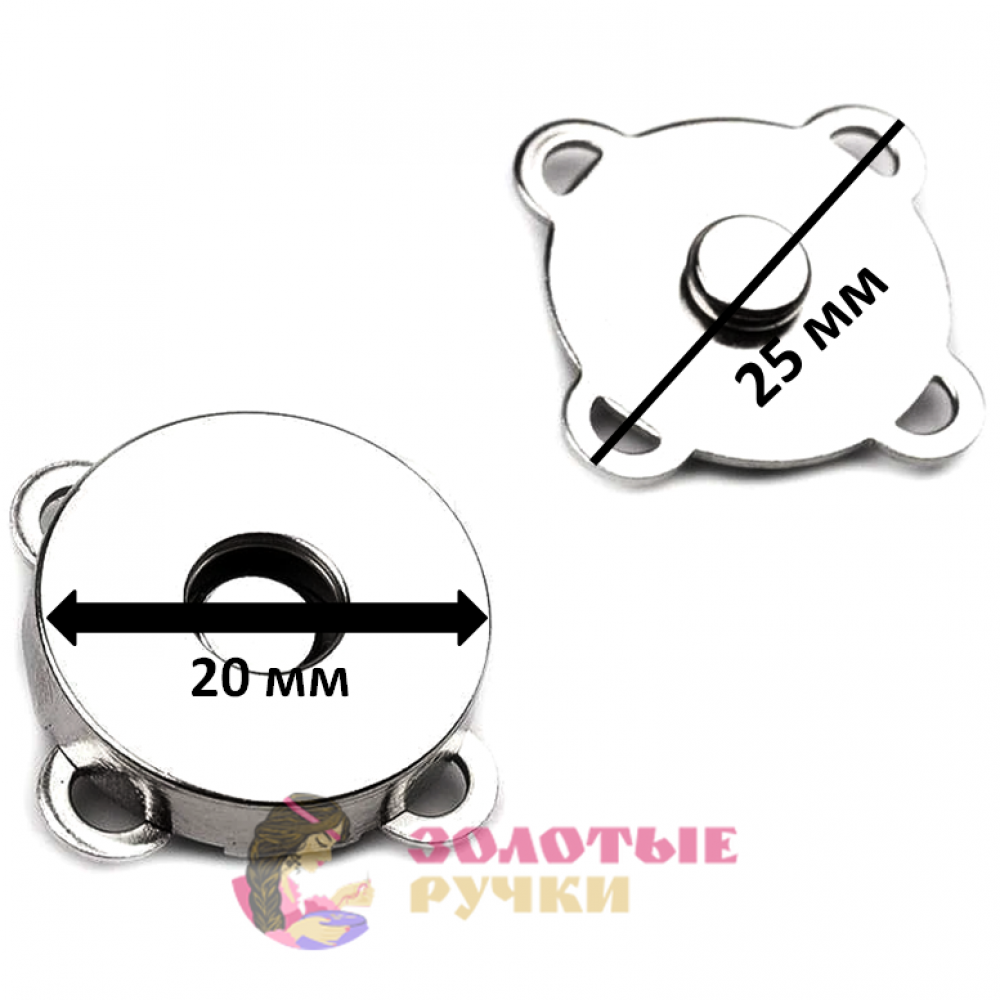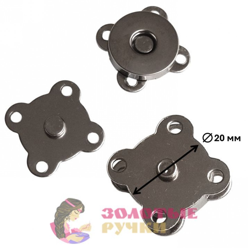 Кнопки магнитные пришивные. Размер: 20 мм. Количество в упаковке: 10 шт. Цвет: серебро.